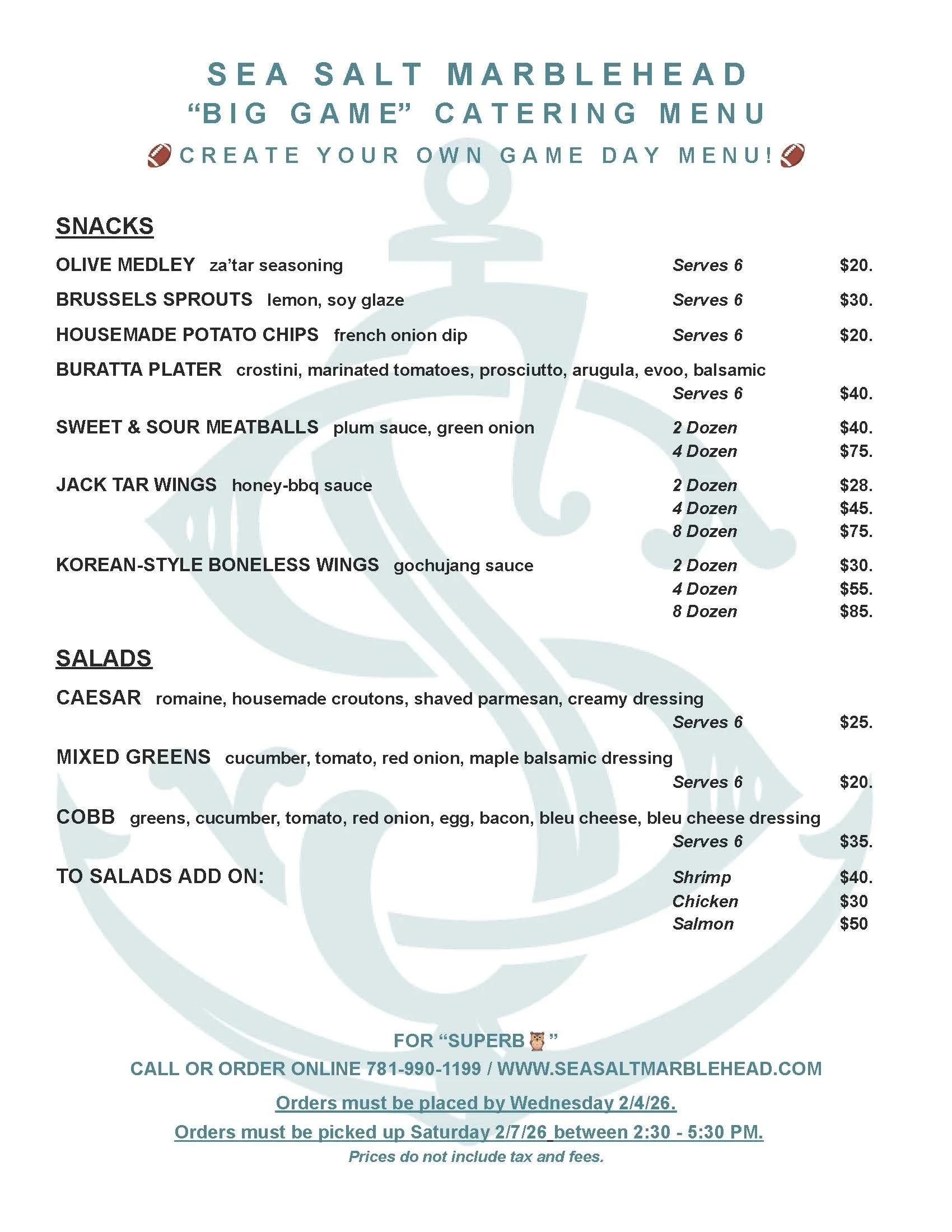 MENU / ORDER ONLINE SORRY, DUE TO WATER DAMAGE, SEA SALT IS CLOSED UNTIL monday 2/9.WE ARE WORKING HARD TO REOPEN BY MONDAY AT 5:00!THANK YOU.